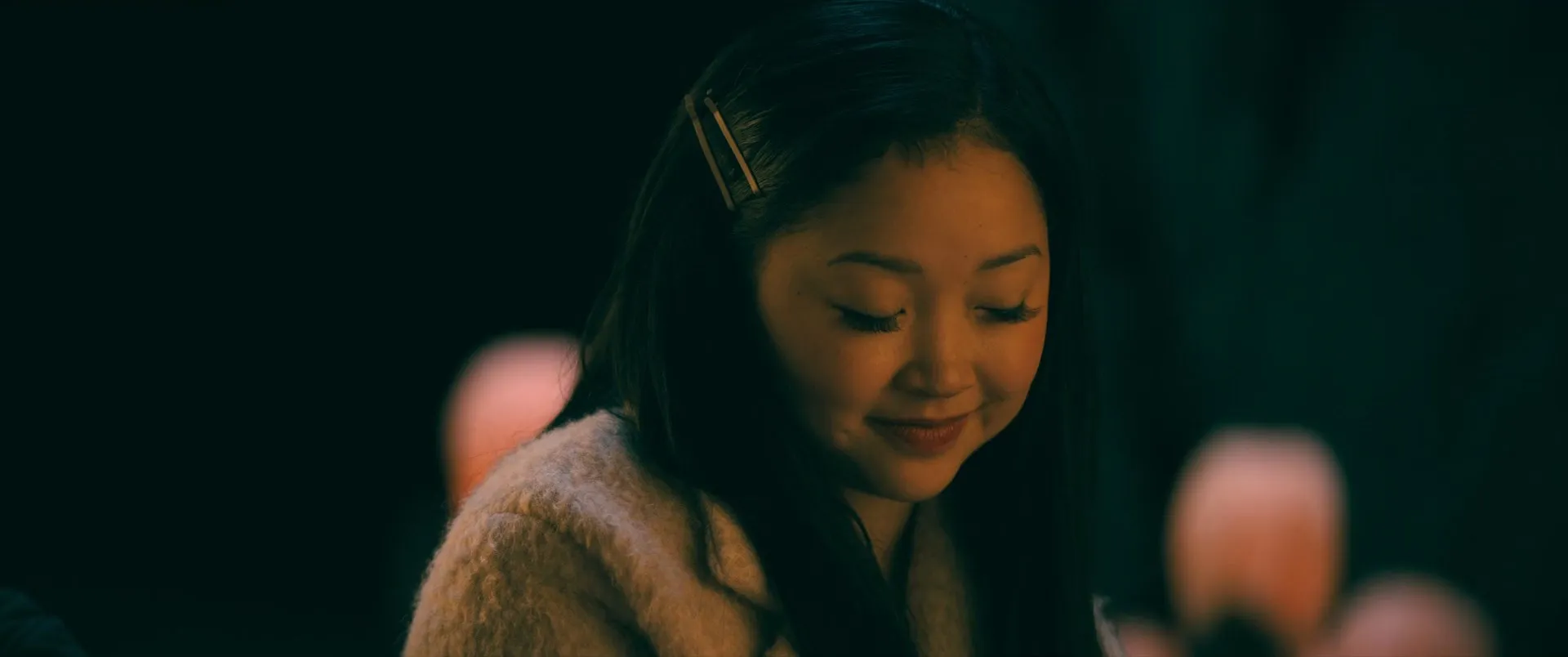 Actors: Lana Condor as Lara Jean Song Covey, Noah Centineo as Peter Kavinsky, Jordan Fisher as John Ambrose McClaren, Anna Cathcart as Katherine "Kitty" Song Covey, John Corbett as Daniel Covey, Sarayu Blue as Trina Rothschild, Janel Parrish as Margot Song Covey, Ross Butler as Trevor Pike, Madeleine Arthur as Christine, Emilija Baranac as Genevieve, Trezzo Mahoro as Lucas James, Holland Taylor as Stormy, Kelcey Mawema as Emily, Julie Tao as Haven, Momona Tamada as Young Laura Jean, Christian Darrel Scott as Young John Ambrose, Jill Morrison as Dorothy, Maddie Ziegler as Pep Squad Girl, Jayden Chow as Haven's Twin Bro #1, Ryan Zhang as Haven's Twin Bro #2, Susie Lee as Eve Song Covey, Ae Yon Han as Grandma, Linda Ko as Aunt Carrie, James Li as Uncle Victor, Peter Grasso as Maitre D', Jaycie Dotin as Waiter #1, Al Miro as Waiter #2, Jara Zeimer as OMG Girl, Anisha Cheema as Valentine's Girlfriend, Naiah Cummins as Calc Teacher, Nicole Jang as Acapella Group, Tuan Nguyen as Acapella Group, Joseph Lachowicz as Acapella Group, Umaiyahl Nageswaran as Acapella Group, Cole Bunch as Acapella Group, Adee Fletcher as Acapella Group, Molly Grace as Crying Girl, Jerry Yang as Nathan, Byron Noble as Mr. Bezdek, Seth Ranaweera as Produce Clerk, Gary Hetherington as Arthur, Elan Ross Gibson as Hilda, Cindy Piper as Patty, Irene Reynolds as Mrs. Glick, Winslow Holmes as Albacar, James Hibbard as Bud, Maggie Sullivun as Daisy, William Samples as Bert, Colin Foo as Morty, Tyler Alderman as Red Head Boy, Jasmine Lukuku as Mail Carrier, Michael Delleva as Teenage Boy, Claire Margaret Corlett as Teenage Girl, June B. Wilde as Joan (uncredited)